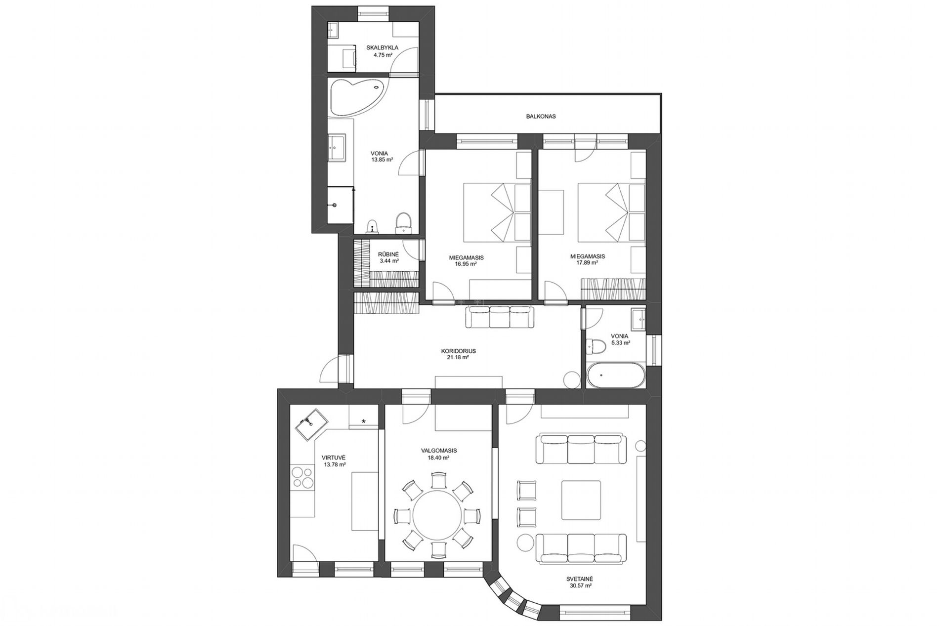 - 2 miegamasis 17,89 kv.m.