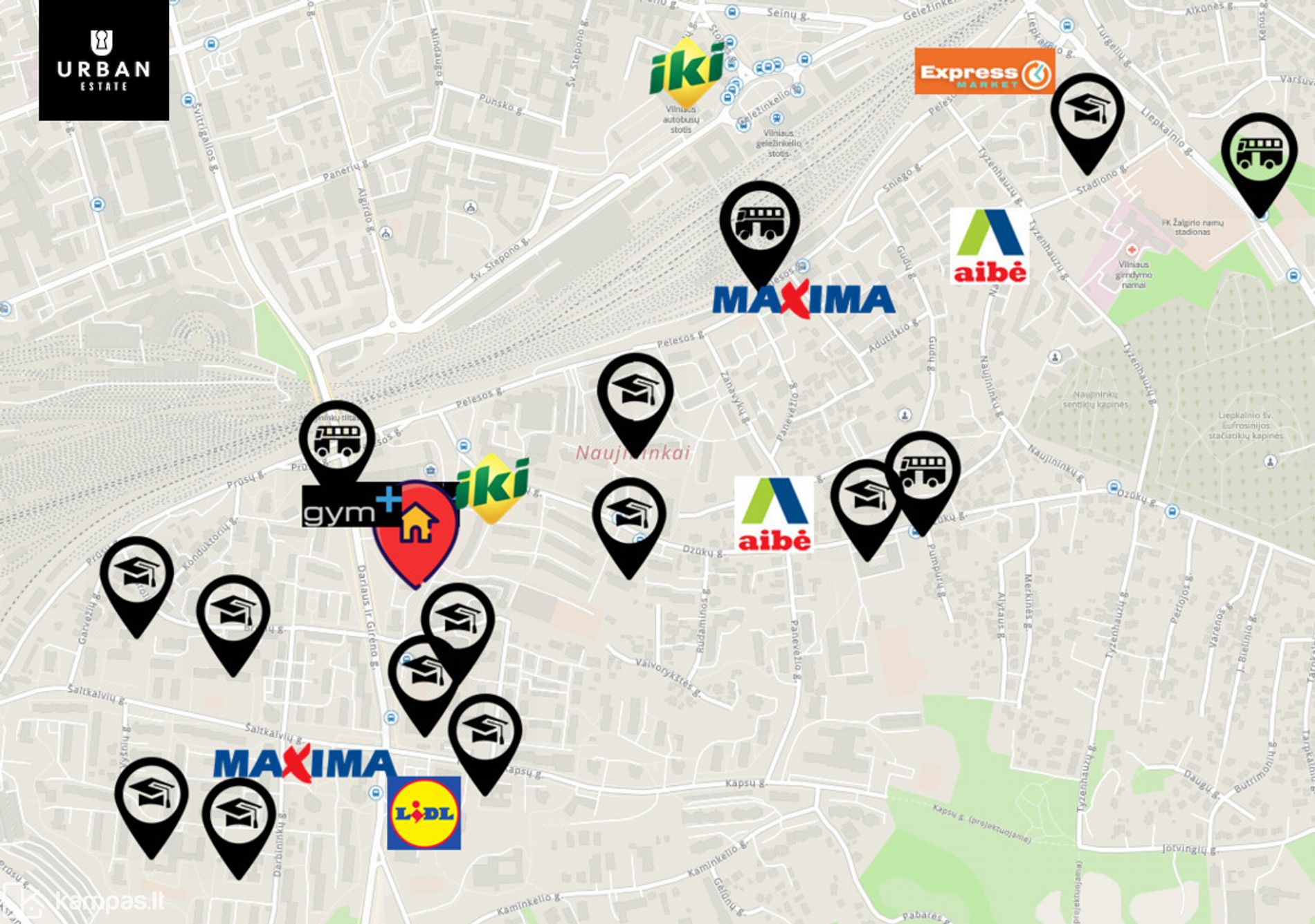 - Strategiškai patogi vieta - nuo čia visus reikalingus objektus ir Senamiestį pasieksite akimirksniu. Aplink įsikūrę prekybos centrai, mokymo bei gydymo įstaigos, viešojo transporto stotelės, sporto klubas.