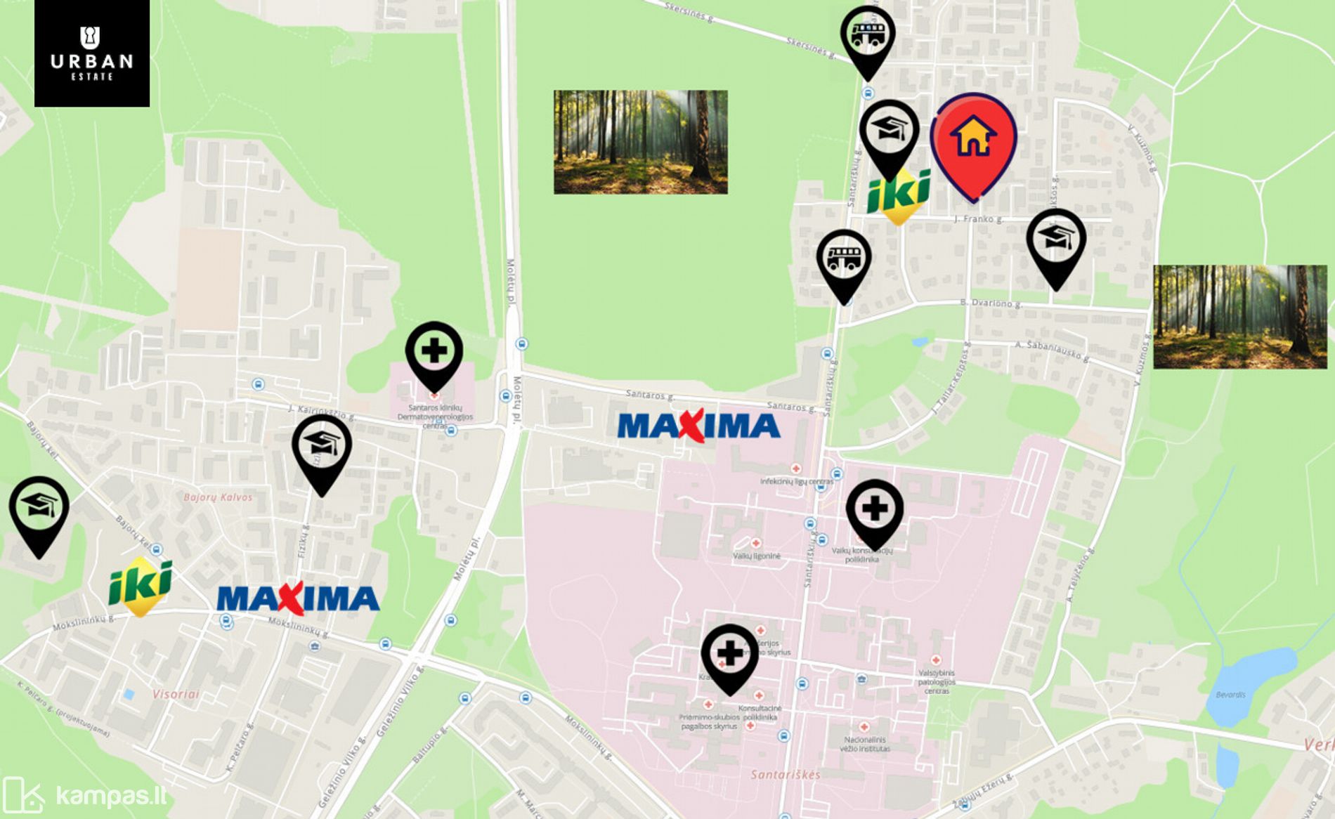 - Patogus susisiekimas su miesto centru ir kitais mikrorajonais tiek nuosavu automobiliu, tiek viešuoju transportu.