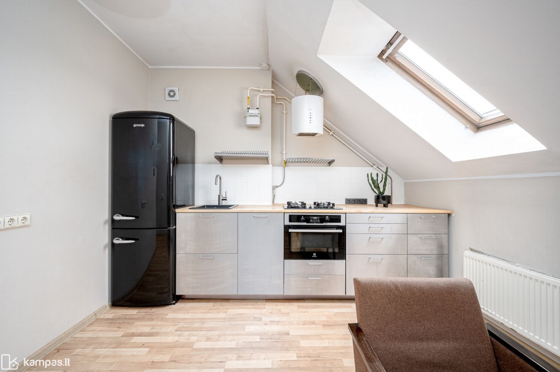 • Įrengta virtuvė, indaplovė, šaldytuvas, el. viryklė, orkaitė, gartraukis;