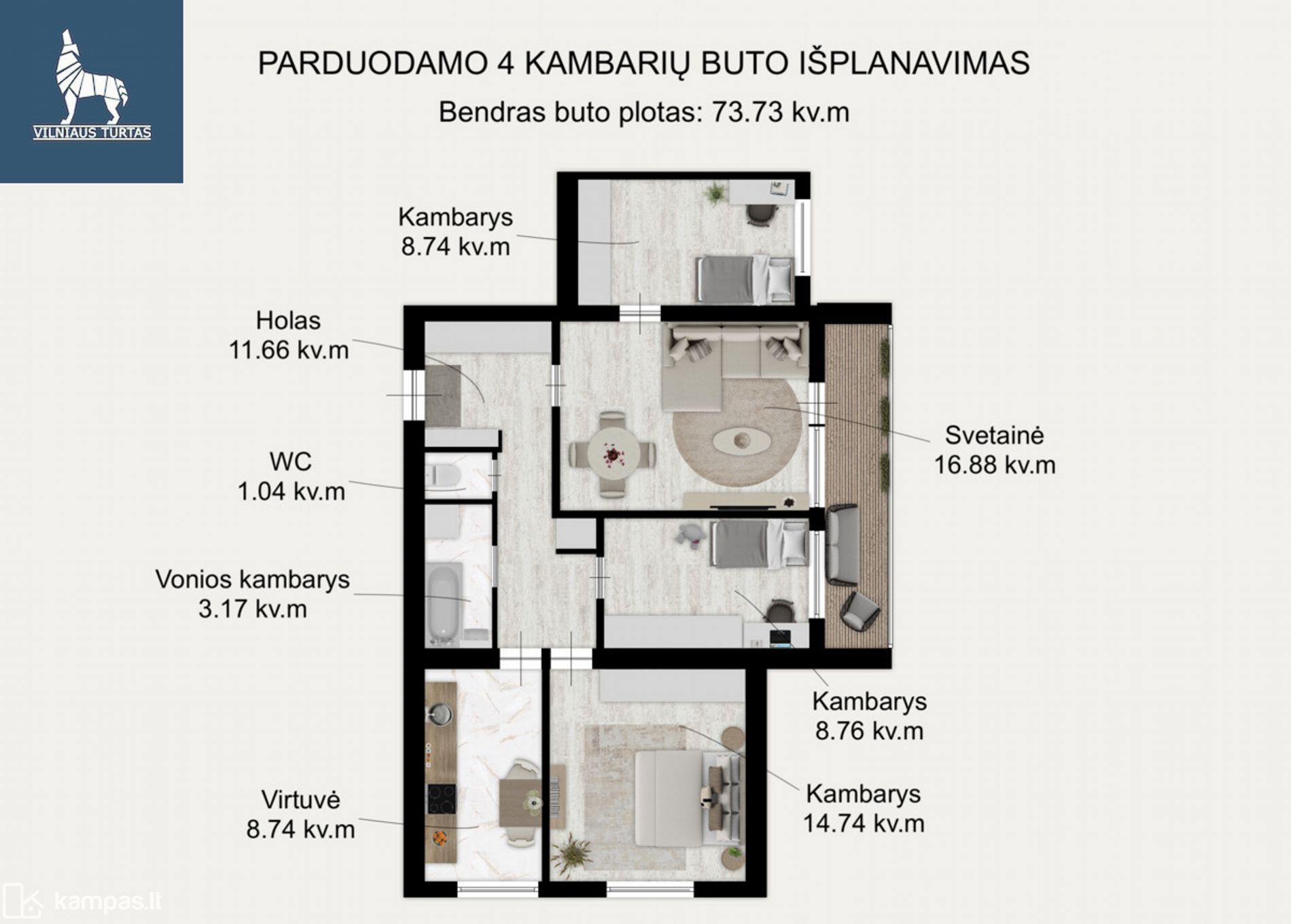 ・Plotas: 73.73 kv. m