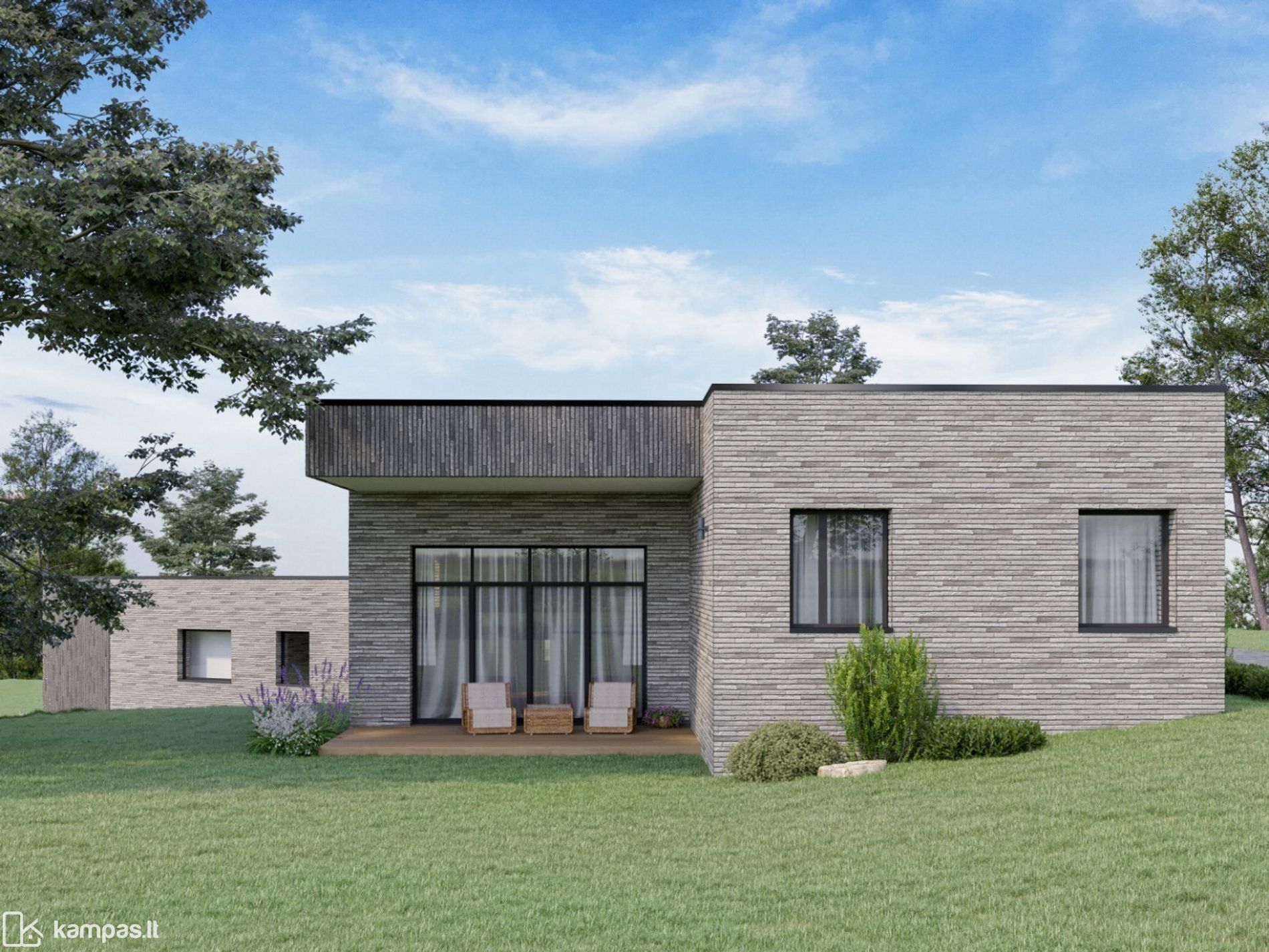 Funkcionalus vieno aukšto namas su solidžiu klinkeriniu fasadu, terasa ir nuosavu kiemu – puikus pasirinkimas šeimai, ieškančiai naujo, ekonomiško ir kokybiško būsto už miesto šurmulio, bet vos keliolikos minučių atstumu nuo Vilniaus centro.