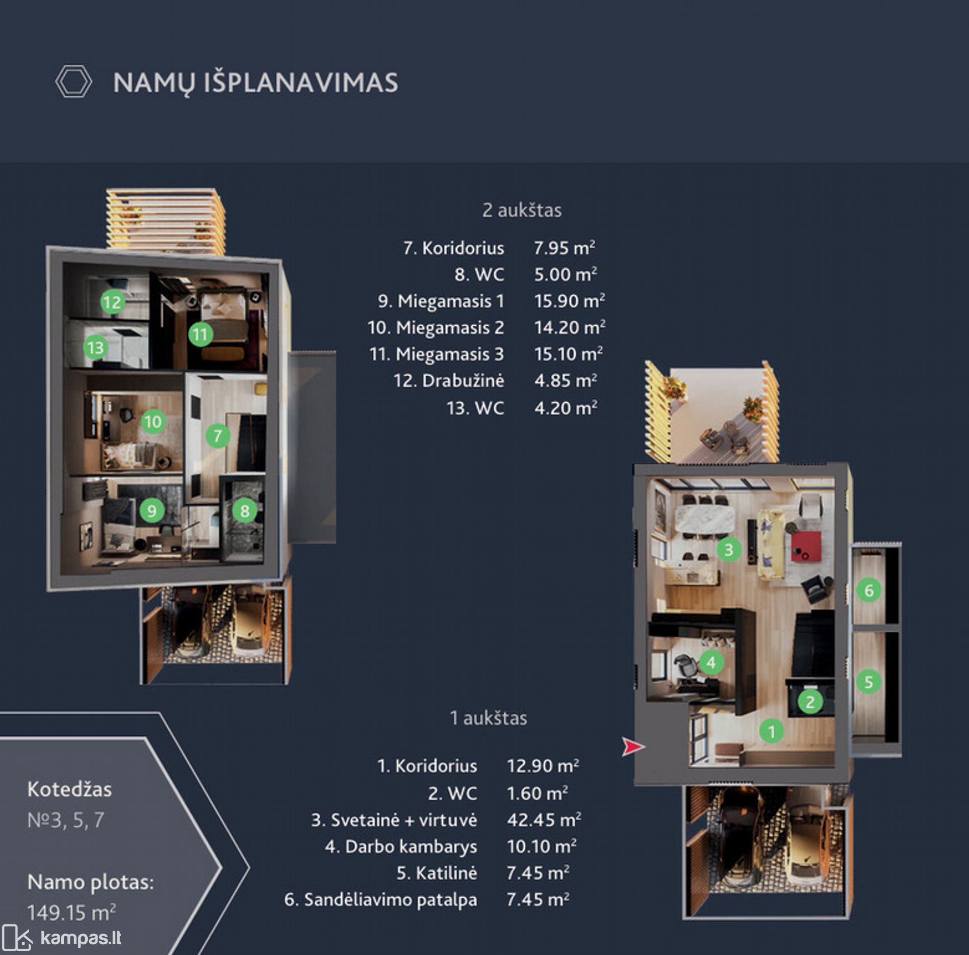 • Energinis efektyvumas A++, šilumos siurblys oras–vanduo, grindinis šildymas – itin maži išlaikymo kaštai.