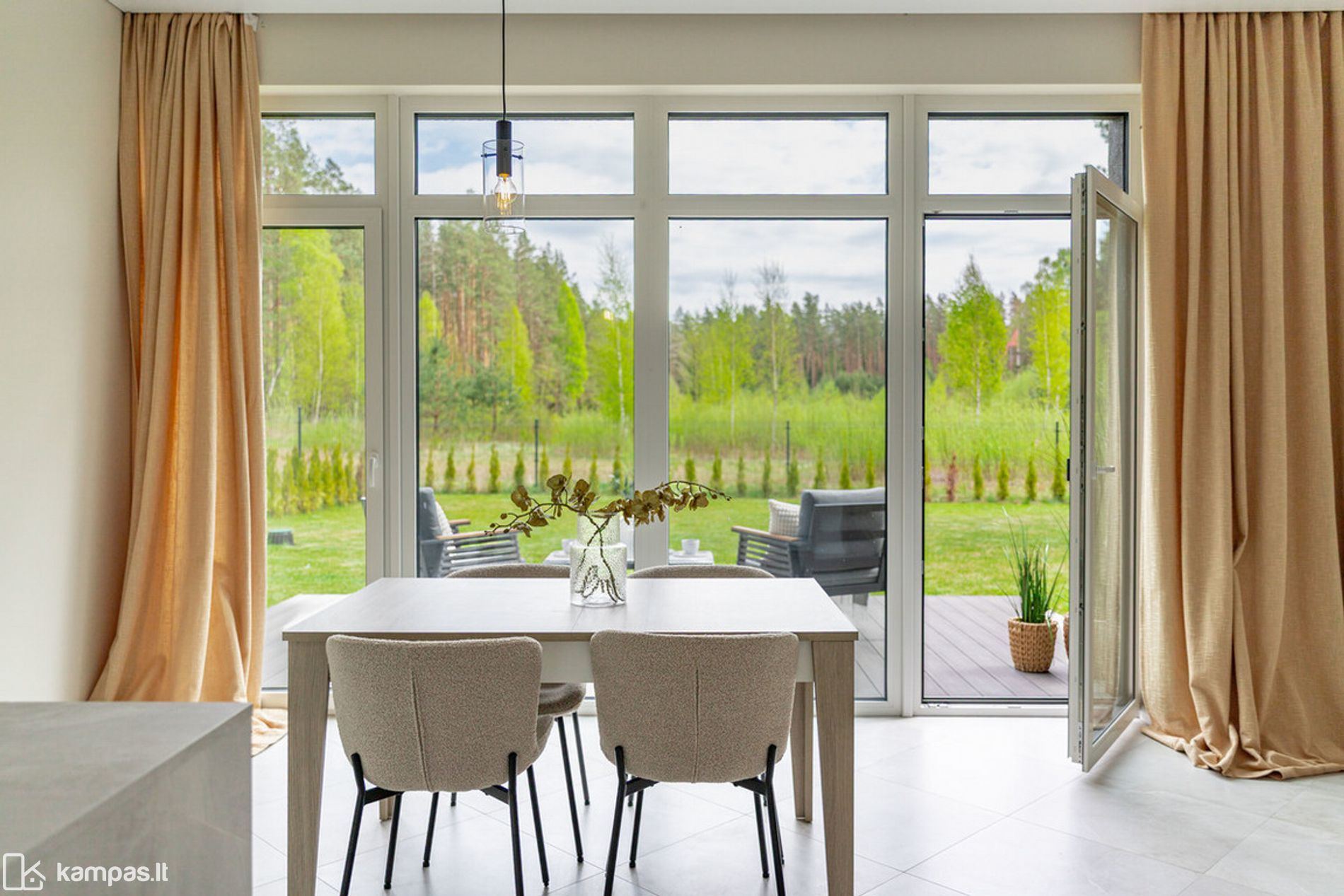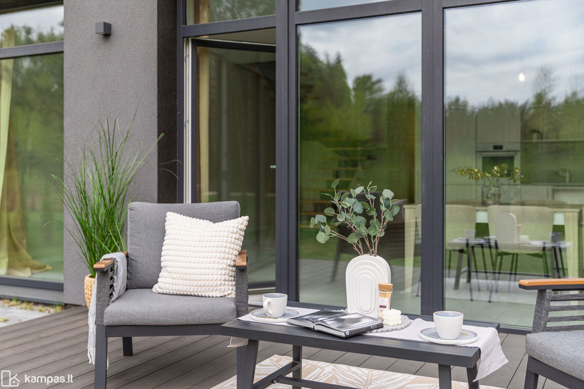 • Erdvi medinė terasa ir sutvarkyta, apželdinta aplinka ramiam laisvalaikiui.
