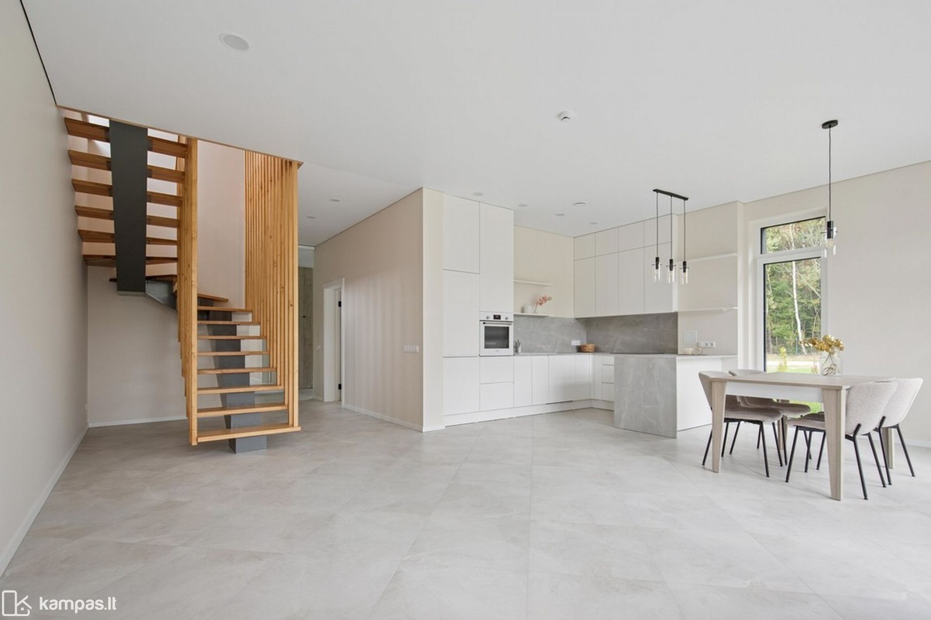 • Funkcionalus išplanavimas: erdvi svetainė su virtuve ir net 4 atskiri kambariai – puikiai tinka šeimai ar norintiems darbo/sporto kambario.