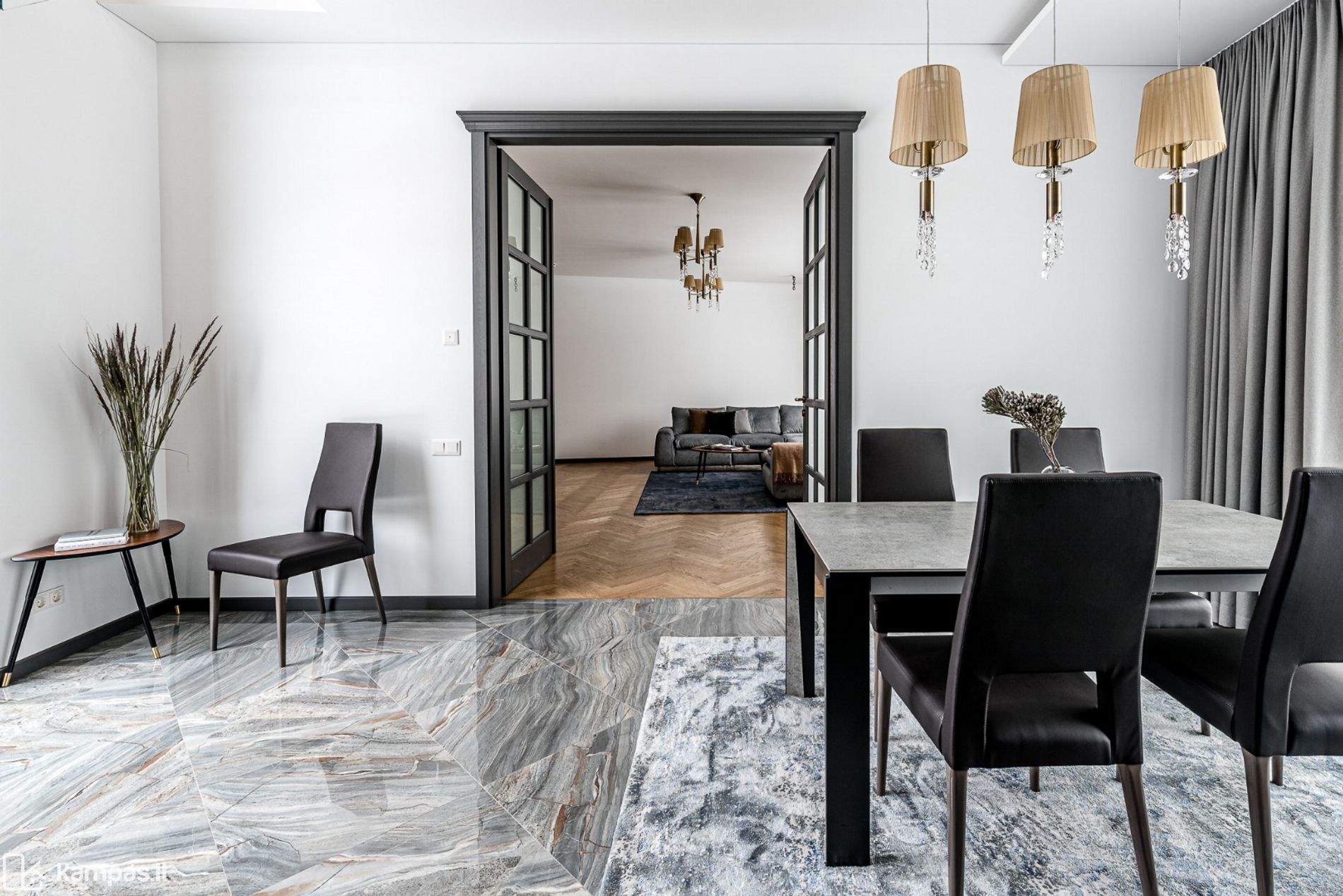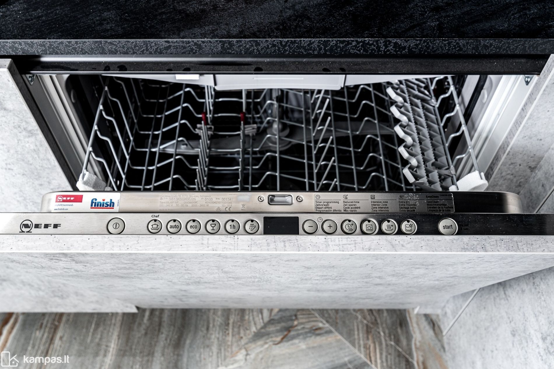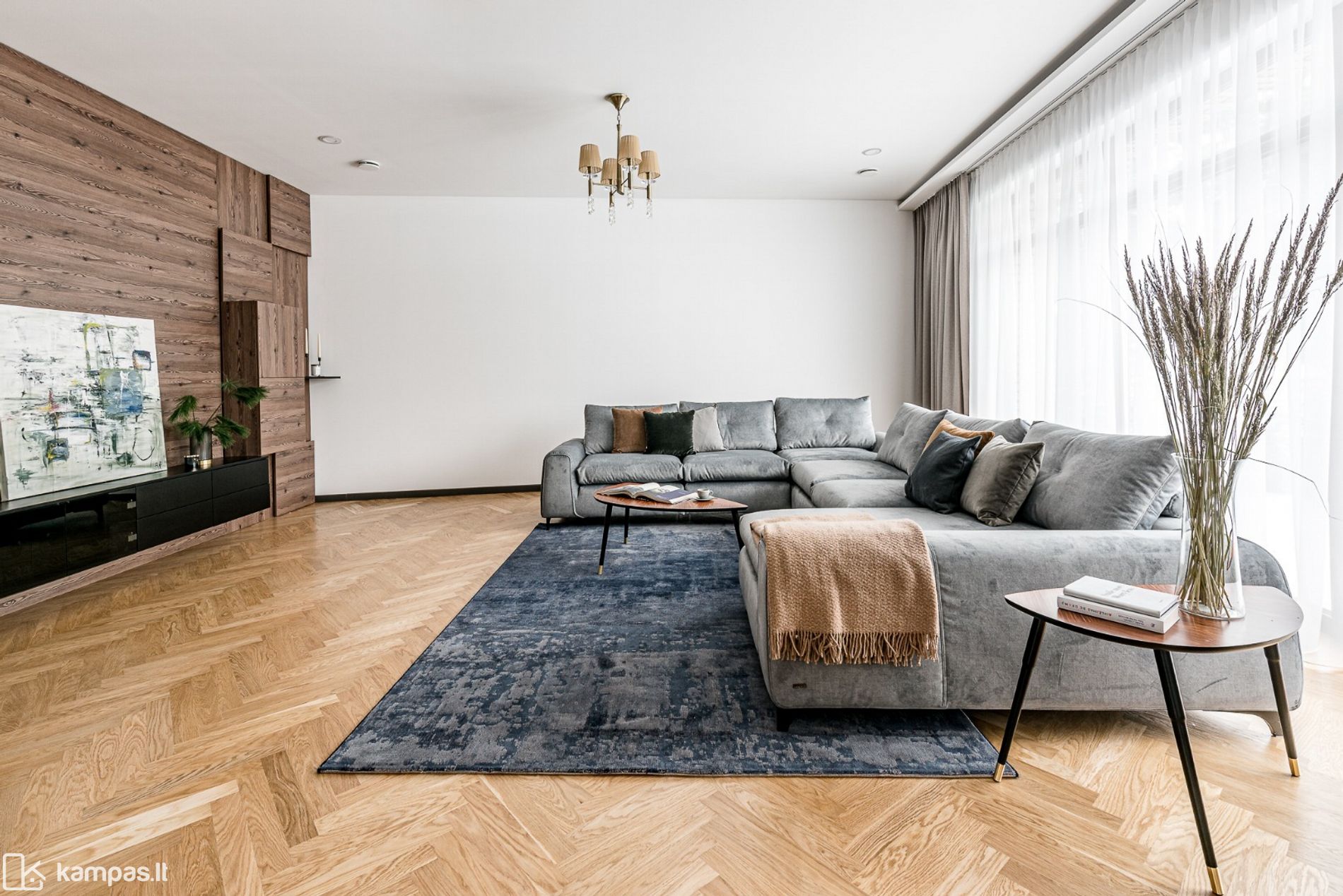• Grindys: šildomos (visame name), kokybiškos parketlentės, vonios kambariuose - plytelės