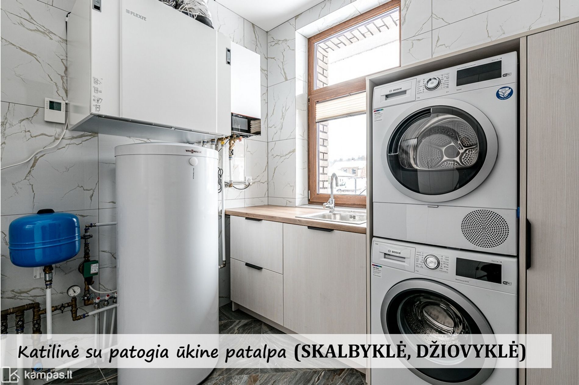 • Įrengta katilinė - patalpa skalbyklei/džiovyklei