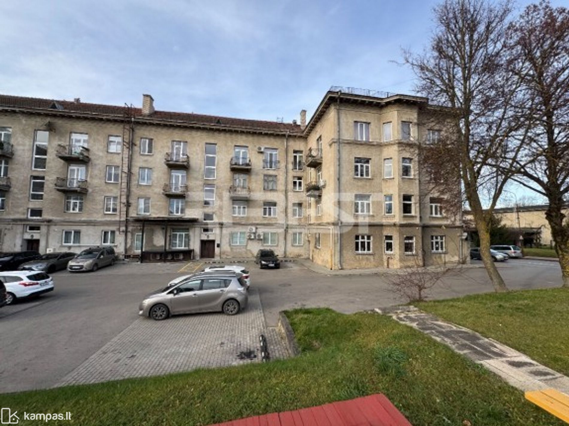 Automobilių parkavimas – tiek prieš pastatą, tiek kieme – daug vietos klientams ar darbuotojams.